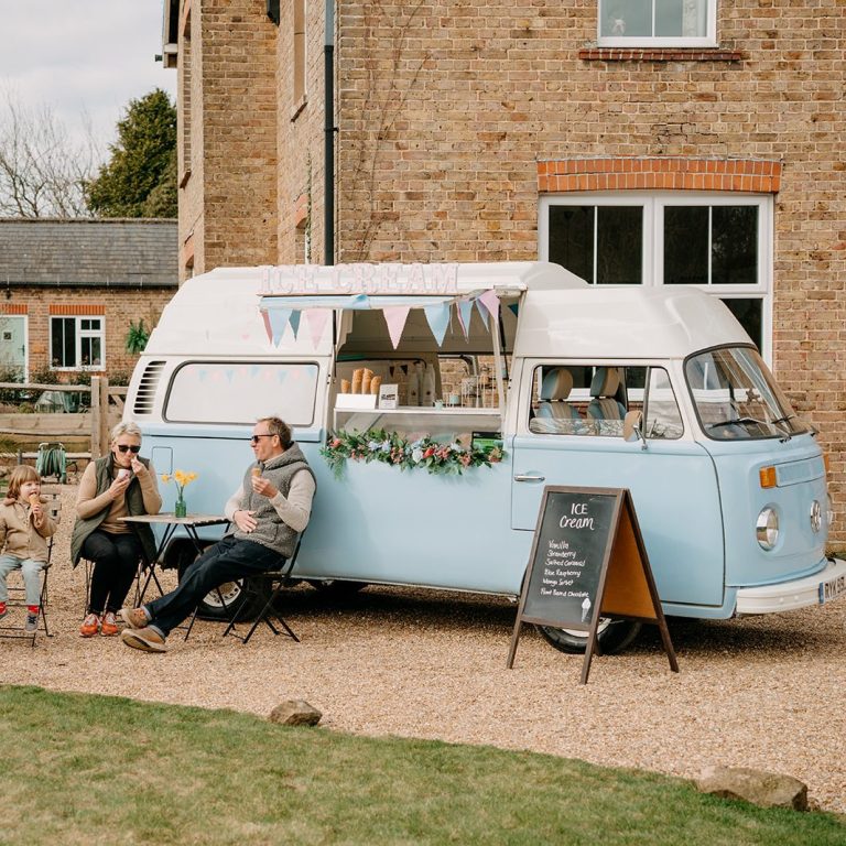 Indulge in delicious ice cream and sorbets from our adorable ice cream van, a hit at any celebration.